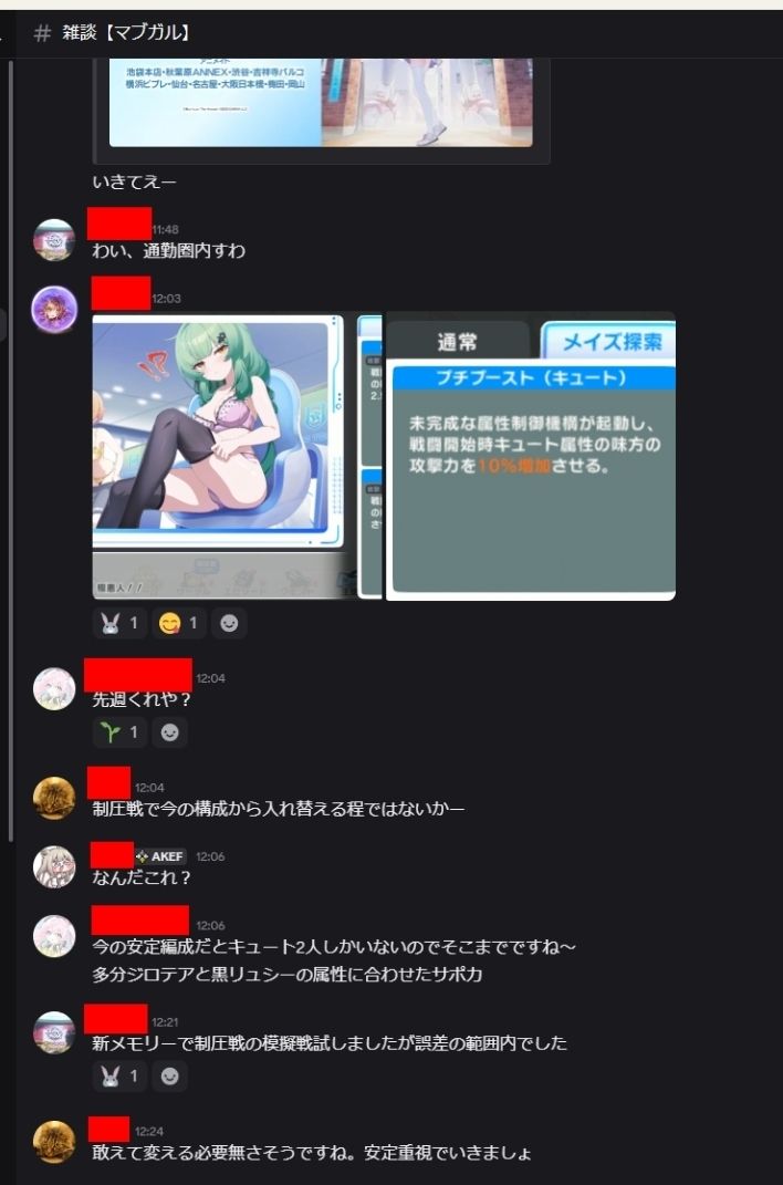 サービス開始から色々なメンバーが試行錯誤して作り上げてきた火力を出すコツがあります。基本的にすべて鯖内で共有しており、戦術演習でスコアの伸びに悩んでいた方々がスコアを着々と伸ばしています。